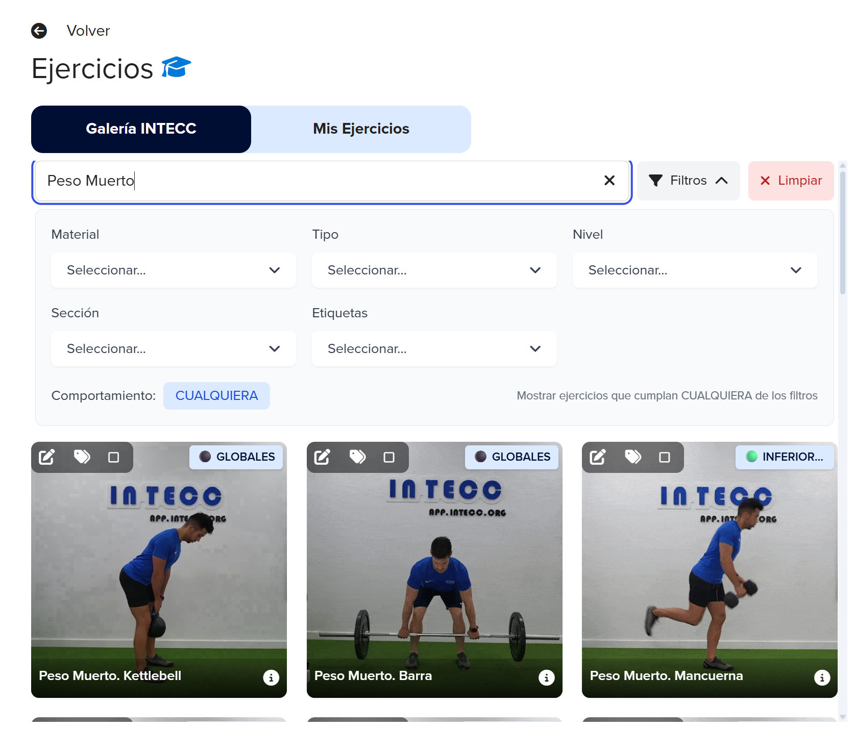 Encuentra tus ejercicios favoritos en segundos gracias al nuevo buscador y los filtros avanzados por material, tipo, nivel, sección o etiquetas.