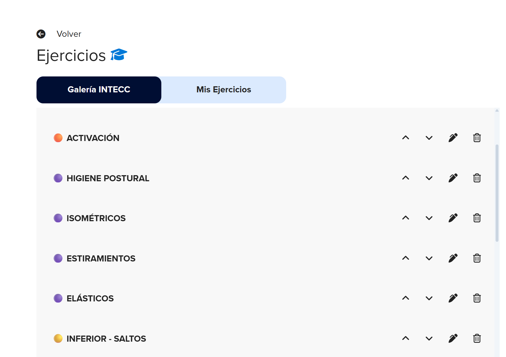 Cada vez que crees una nueva sesión, usa el buscador y selecciona todos los ejercicios que quieras y se añadirán directamente (luego podrás reordenarlos a tu gusto).