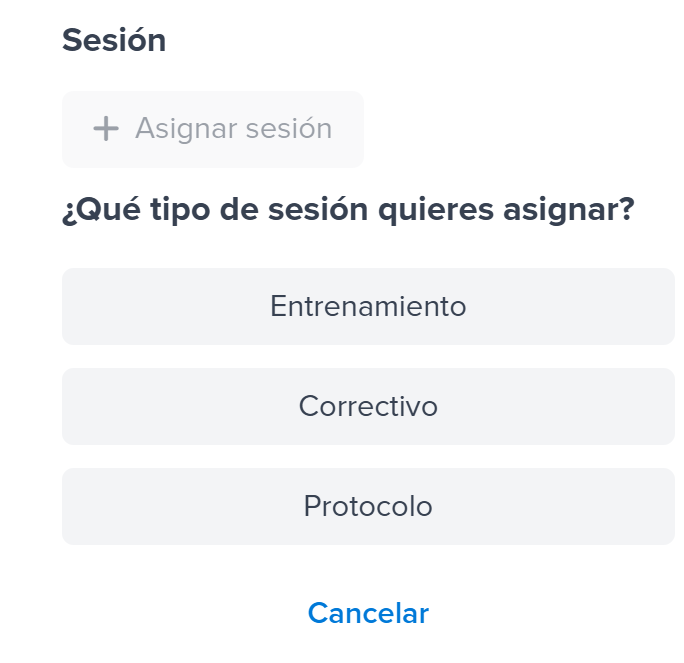 Ya puedes crear un evento del tipo Clase, Entrenamiento, Correctivos, Protocolos o Valoración y añadir una sesión a todos tus clientes para que les aparezca tanto en el calendario (y puedan abrirla directamente) como en la sección correspondiente de su App.