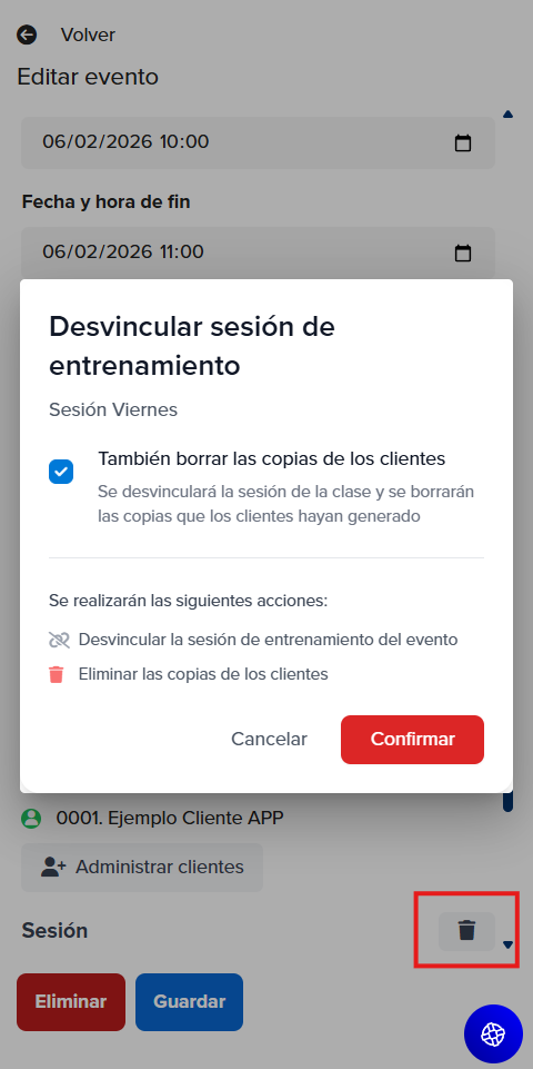Asignar cualquier sesión de tu batería de sesiones: